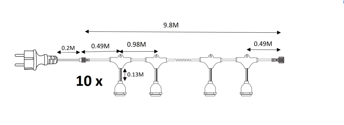 Girlandę wyposażono w łącznie 10 punktów świetlnych o mocy 1,5W