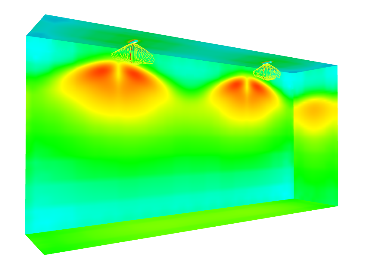 Kąt 75°×140° - podwójnie symetryczny rozsył strumienia świetlnego, dedykowany do oświetlenia alejek między regałami