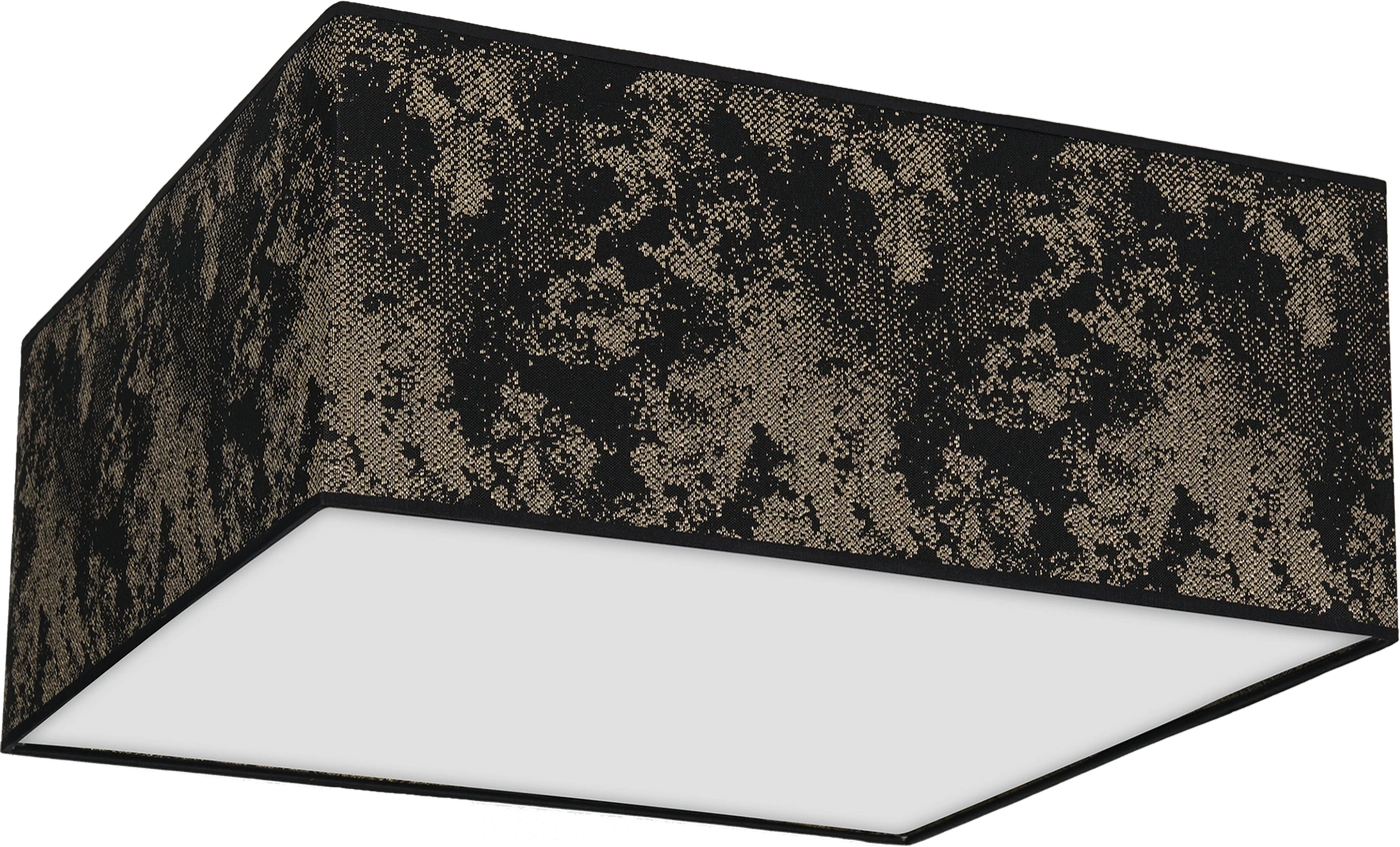 SATINO MLP7315 to stylowa lampa sufitowa z trzema źródłami światła. Korpus lampy wykonano z wysokiej jakości metalu. Abażur jest z czarno-złotej tkaniny, zamknięty od spodu mleczną osłoną z tworzywa. Oprawa będzie idealnym wyborem do wnętrz urządzonych w nowoczesnym stylu. Doskonale będzie się prezentować w: salonie, jadalni, sypialni, pokoju młodzieżowym, gabinecie, biurze, lokalu, przedpokoju, korytarzu, kuchni. Wysokość lampy to: 13 cm, szerokość 50 cm, głębokość 50 cm. Źródłem światła jest żarówka typu E27 o mocy max 60W w ilości 3 szt.