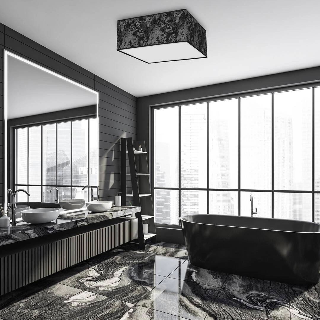 SATINO MLP7326 to stylowa lampa sufitowa z trzema źródłami światła. Korpus lampy wykonano z wysokiej jakości metalu. Abażur jest z czarno-srebrnej tkaniny, zamknięty od spodu mleczną osłoną z tworzywa. Oprawa będzie idealnym wyborem do wnętrz urządzonych w nowoczesnym stylu. Doskonale będzie się prezentować w: salonie, jadalni, sypialni, pokoju młodzieżowym, gabinecie, biurze, lokalu, przedpokoju, korytarzu, kuchni. Wysokość lampy to: 13 cm, szerokość 50 cm, głębokość 50 cm. Źródłem światła jest żarówka typu E27 o mocy max 60W w ilości 3 szt.