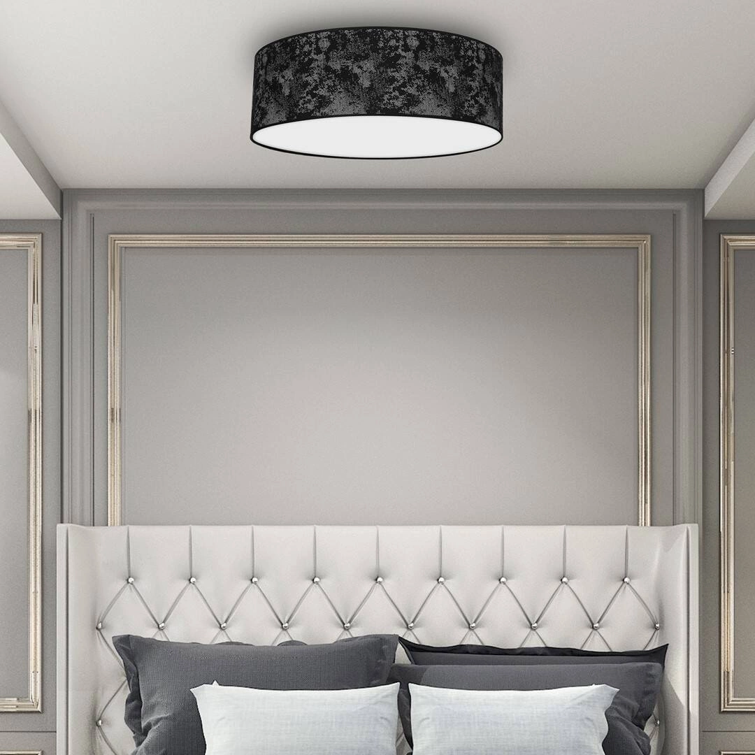 SATINO MLP7330 to stylowa lampa sufitowa z trzema źródłami światła. Korpus lampy wykonano z wysokiej jakości metalu. Abażur jest z czarno-srebrnej tkaniny, zamknięty od spodu mleczną osłoną z tworzywa. Oprawa będzie idealnym wyborem do wnętrz urządzonych w nowoczesnym stylu. Doskonale będzie się prezentować w: salonie, jadalni, sypialni, pokoju młodzieżowym, gabinecie, biurze, lokalu, przedpokoju, korytarzu, kuchni. Wysokość lampy to: 13 cm, średnica 60 cm. Źródłem światła jest żarówka typu E27 o mocy max 60W w ilości 3 szt.