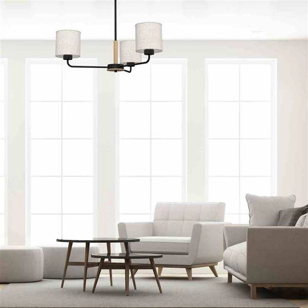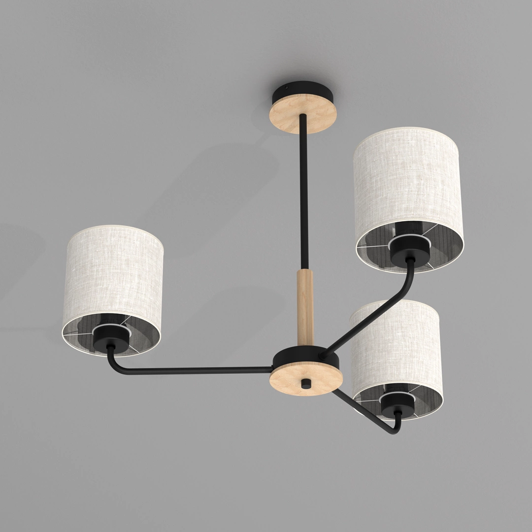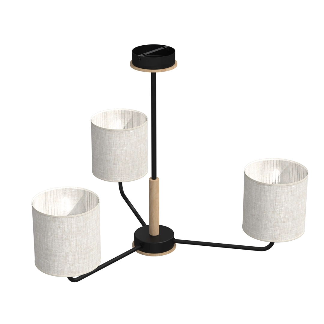 ATLANTA MLP7451 to stylowy żyrandol z trzema źródłami światła. Korpus lampy wykonano z wysokiej jakości metalu w kolorze czarnym z drewnianymi wstawkami. Klosze są z beżowo-szarego lnu o wyraźnym splocie. Oprawa będzie idealnym wyborem do wnętrz urządzonych w stylu skandynawskim, rustykalnym oraz loftowym. Doskonale będzie się prezentować w: salonie, jadalni, sypialni, pokoju młodzieżowym, gabinecie, biurze, lokalu, przedpokoju, kuchni. Wysokość lampy to: 52 cm, szerokość 70 cm, głębokość 70 cm. Źródłem światła jest żarówka typu E27 o mocy max 60W w ilości 3 szt.