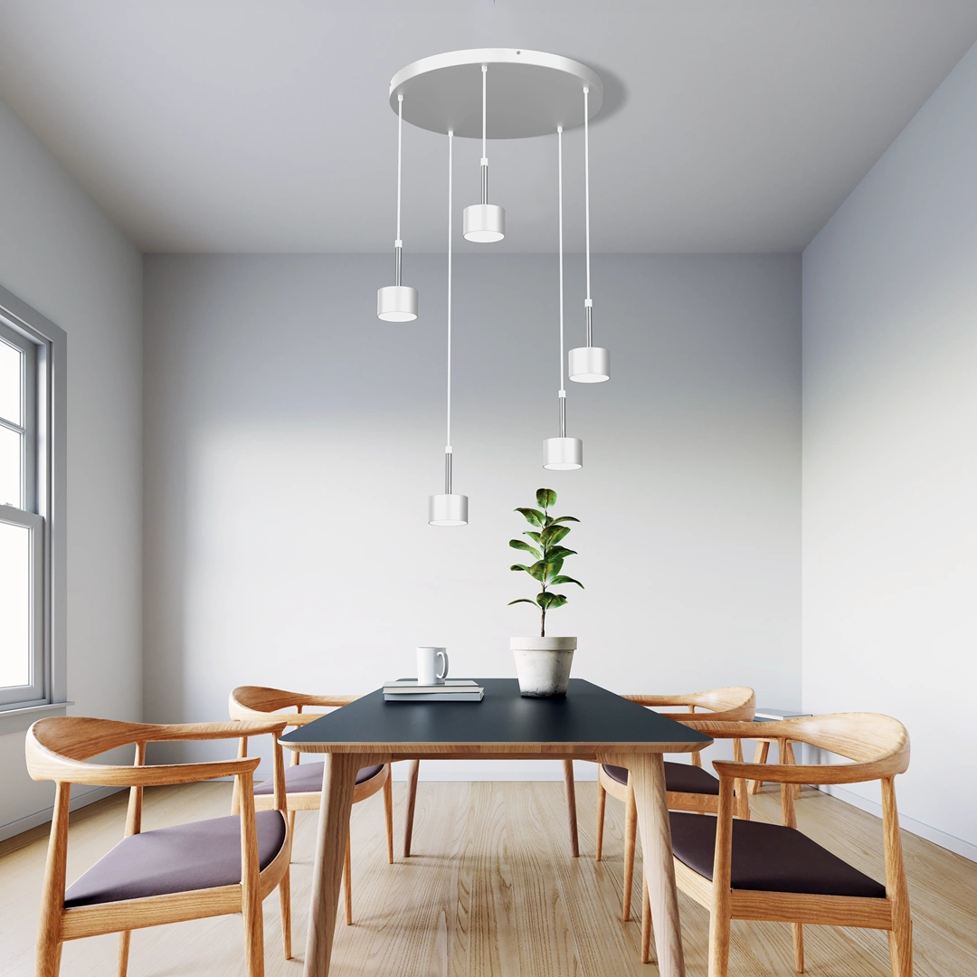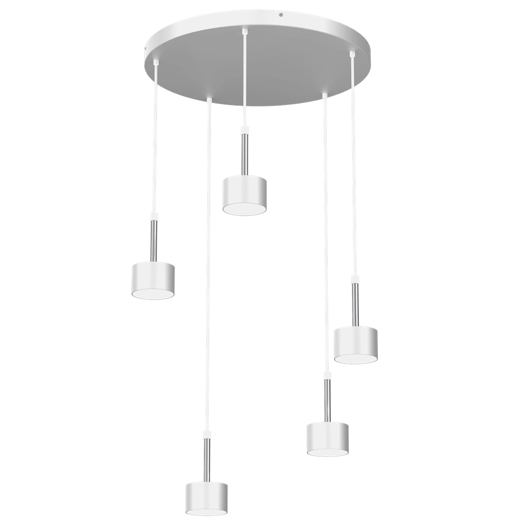ARENA MLP7781 to stylowa lampa wisząca z pięcioma źródłami światła. Wykonana została z wysokiej jakości metalu w kolorze białym ze srebrnymi detalami. Oprawa będzie idealnym wyborem do wnętrz urządzonych w stylu klasycznym oraz nowoczesnym. Doskonale będzie się prezentować w: salonie, jadalni, sypialni, pokoju młodzieżowym, gabinecie, biurze, lokalu, przedpokoju, kuchni. Dużym atutem jest możliwość regulacji wysokości. Wysokość maksymalna lampy to: 90 cm, szerokość 44 cm, głębokość 44 cm. Źródłem światła jest żarówka typu GX53 o mocy max 11W w ilości 5 szt.