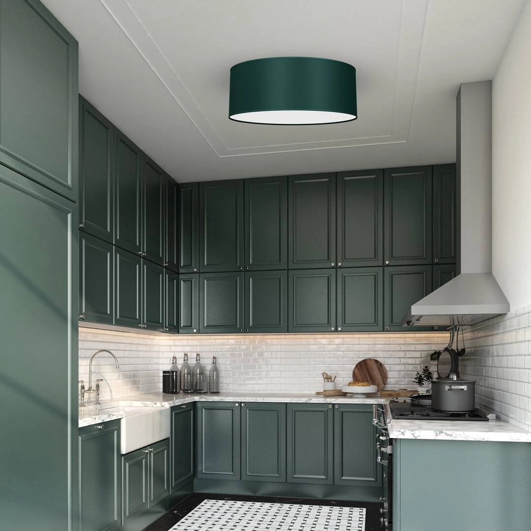 VERDE MLP7876 to stylowa lampa sufitowa z dwoma źródłami światła. Korpus lampy wykonano z wysokiej jakości metalu. Lampa posiada okrągły klosz z zielonej tkaniny zamknięty od spodu białym dyfuzorem. Oprawa będzie idealnym wyborem do wnętrz urządzonych w stylu klasycznym, nowoczesnym oraz glamour. Doskonale będzie się prezentować w: salonie, jadalni, sypialni, pokoju młodzieżowym, gabinecie, lokalu, przedpokoju, kuchni. Wysokość lampy to: 13 cm, średnica 40 cm. Źródłem światła jest żarówka typu E27 o mocy max 60W w ilości 2 szt.