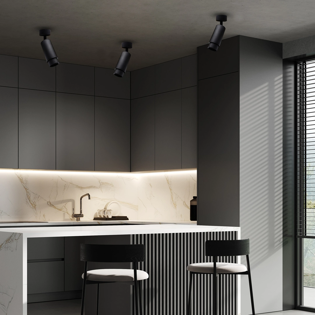 MICA ZOOM ML7373 to nowoczesny reflektor sufitowy z jednym źródłem światła. Wykonany został z wysokiej jakości aluminium w kolorze czarnym. Klosz lampy ma możliwość regulacji położenia, oraz kąta świecenia dzięki wysuwanej soczewce. Oprawa będzie idealnym wyborem do wnętrz urządzonych w nowoczesnym stylu. Doskonale będzie się prezentować w: salonie, jadalni, sypialni, pokoju młodzieżowym, przedpokoju, korytarzu, biurze, lokalu, kuchni. Wysokość lampy to: 16,5 cm, szerokość 6 cm, głębokość 5,5 cm. Źródłem światła jest żarówka GU10 o mocy max 8W w ilości 1 szt.
