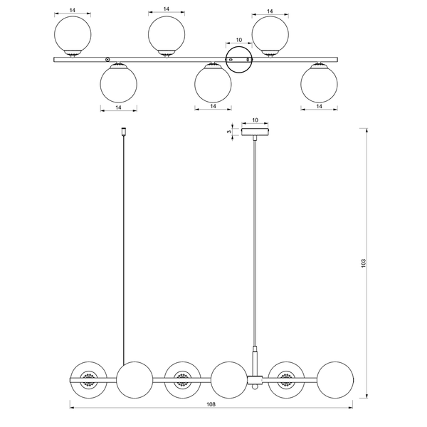 POP MLP7845 to stylowa lampa wisząca z sześcioma źródłami światła. Zawiesie lampy wykonano z wysokiej jakości metalu w kolorze czarnym ze złotymi detalami. Klosze są z białego szkła. Oprawa będzie idealnym wyborem do wnętrz urządzonych w stylu klasycznym oraz nowoczesnym. Doskonale będzie się prezentować w: salonie, jadalni, sypialni, pokoju młodzieżowym, gabinecie, biurze, lokalu, przedpokoju, kuchni. Wysokość lampy to: 103 cm, szerokość 108 cm, głębokość 35 cm. Źródłem światła jest żarówka typu E14 o mocy max 40W w ilości 6 szt.