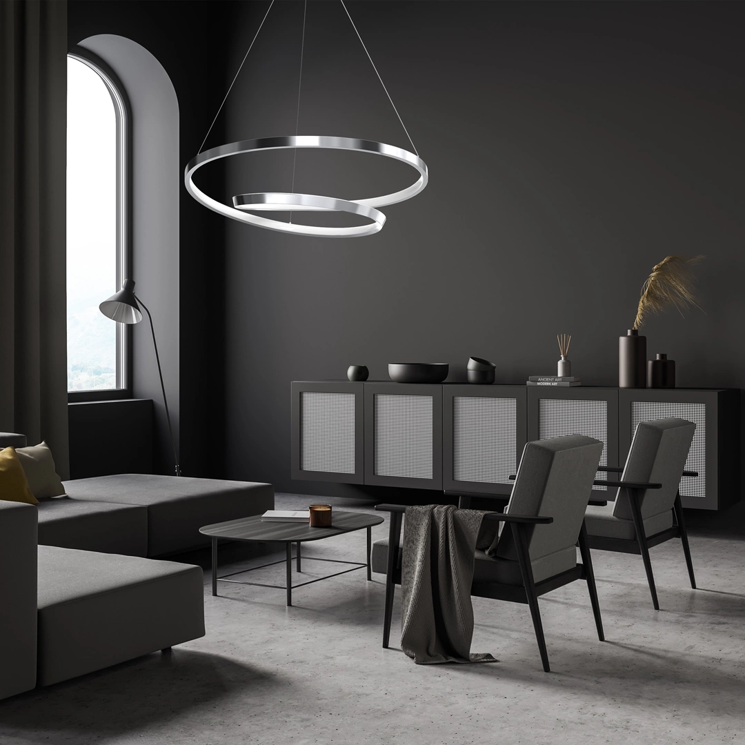LUCERO ML7949 to stylowa lampa wisząca z jednym źródłem światła. Wykonana została z wysokiej jakości metalu w kolorze chromowym, źródło światła ukryto pod mleczną osłoną z tworzywa. Oprawa będzie idealnym wyborem do wnętrz urządzonych w stylu nowoczesnym oraz minimalistycznym. Doskonale będzie się prezentować w: salonie, jadalni, sypialni, pokoju młodzieżowym, gabinecie, biurze, lokalu, kuchni. Dużym atutem jest możliwość regulacji wysokości. Wysokość maksymalna lampy to: 90 cm, szerokość 50 cm, głębokość 50 cm. Lampa posiada zintegrowane źródło światła LED o mocy 48W, neutralnej barwie 4000K i jasności 2400lm (źródło światła jest wymienne)