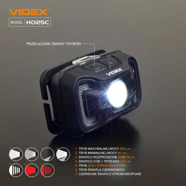 Latarka czołowa LED H025C VIDEX 310Lm 5000K przeznaczona jest do indywidualnego użytku w nocy lub w pomieszczeniach bez oświetlenia. Główne wskaźniki to szczelność, niezawodna obudowa i zasięg światła.