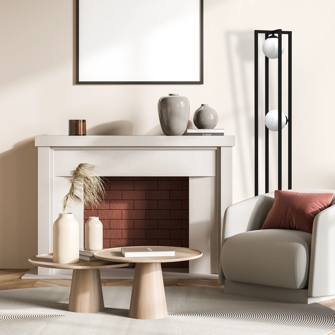 Lampa podłogowa DIEGO, MLP8572, czarna z białymi kloszami, 2x40W E14