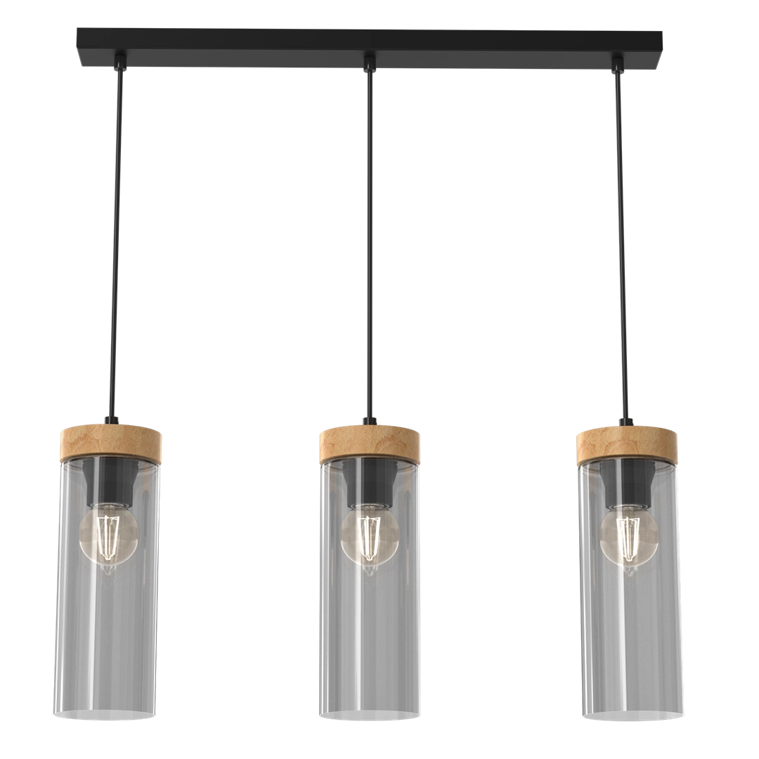 Lampa wisząca ELICA, MLP8665, czarny/drewno/transparentny, 3x60W E27