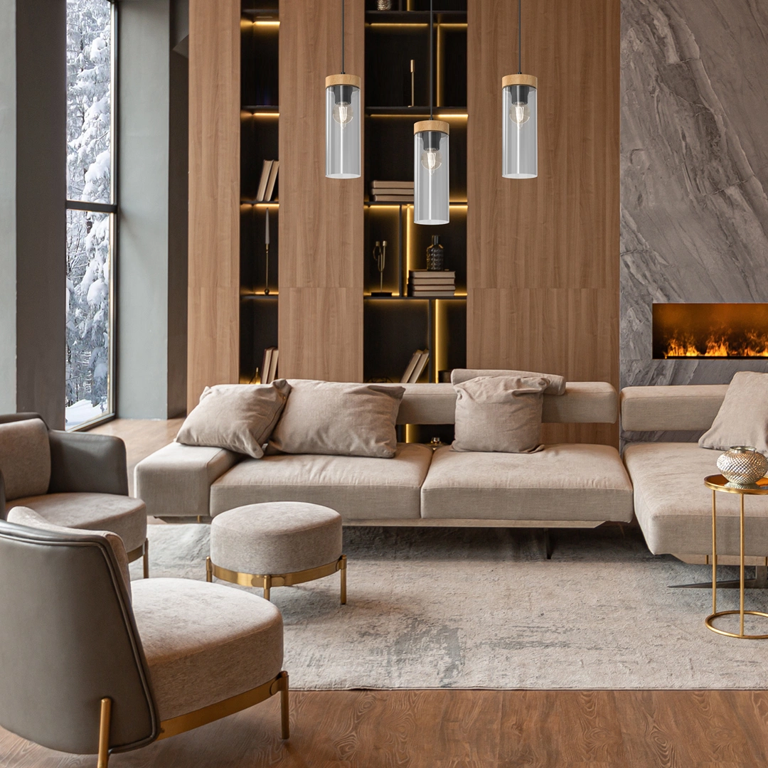 • Lampa wisząca ELICA, MLP8665, czarny/drewno/transparentny, 3x60W E27