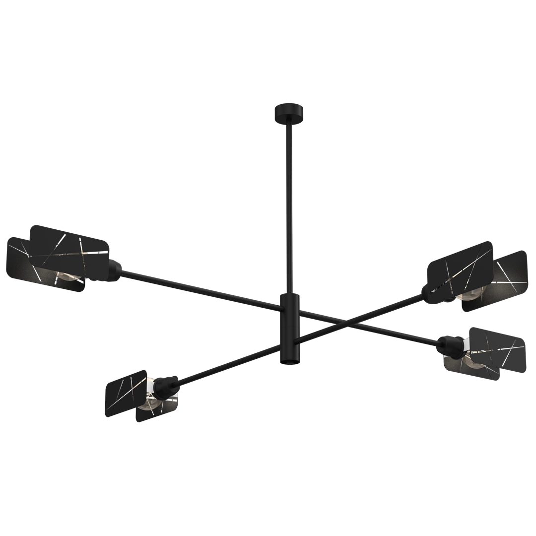 ASTRA MLP8679 to stylowa lampa sufitowa z czterema źródłami światła. Wykonana została z wysokiej jakości metalu i plastiku w kolorze czarnym. Oprawa będzie idealnym wyborem do wnętrz urządzonych w nowoczesnym stylu. Doskonale będzie się prezentować w: salonie, jadalni, sypialni, pokoju młodzieżowym, gabinecie, biurze, lokalu, kuchni. Wysokość lampy to: 58 cm, szerokość 124 cm, głębokość 124 cm. Źródłem światła jest żarówka typu E27 o mocy max 60W w ilości 4 szt.