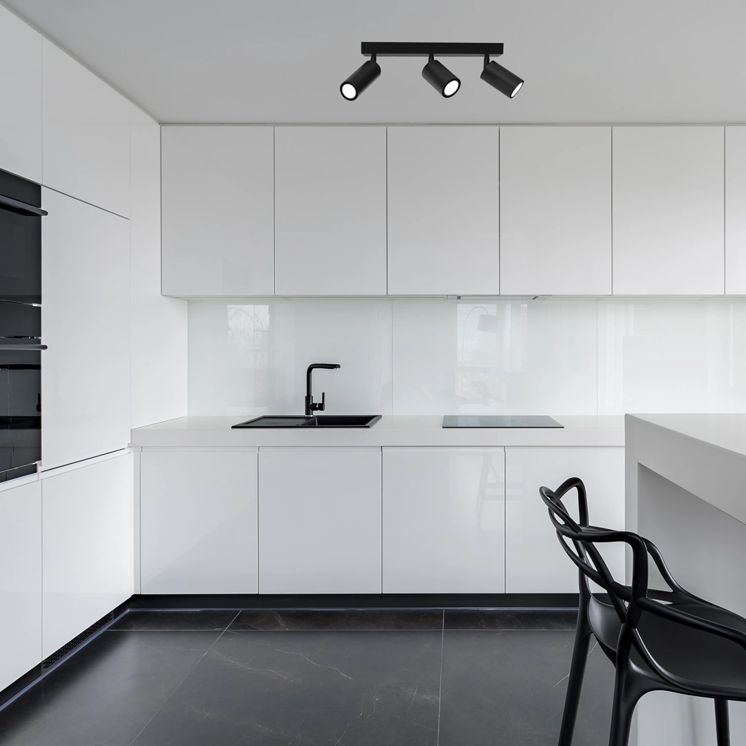 HUDSON MLP8796 to stylowa lampa sufitowa z trzema źródłami światła. Wykonana została z wysokiej jakości metalu w kolorze czarnym. Klosze lampy mają możliwość regulacji punktu padania światła. Oprawa będzie idealnym wyborem do wnętrz urządzonych w stylu klasycznym oraz nowoczesnym. Doskonale będzie się prezentować w: salonie, jadalni, sypialni, pokoju młodzieżowym, gabinecie, biurze, lokalu, przedpokoju, kuchni. Wysokość lampy to: 15,5 cm, szerokość 40 cm, głębokość 5,5 cm. Źródłem światła jest żarówka typu GU10 o mocy max 8W w ilości 3 szt.
