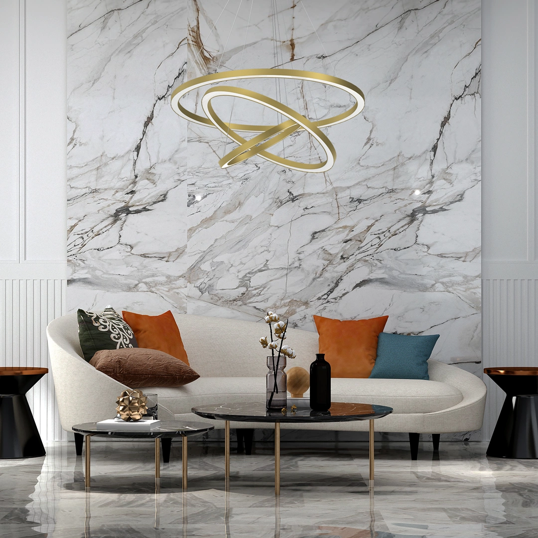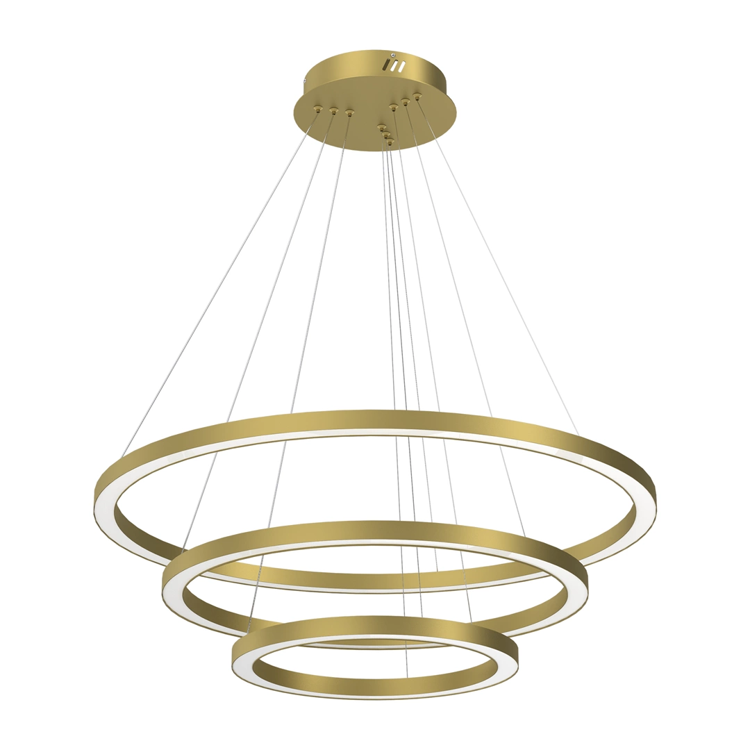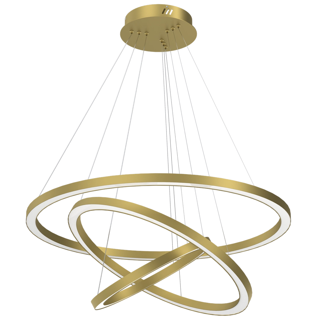GALAXIA ML8425 to stylowa lampa wisząca z trzema źródłami światła. Wykonana została z wysokiej jakości metalu w kolorze złotym, źródła światła ukryto pod mlecznymi osłonami z tworzywa. Oprawa będzie idealnym wyborem do wnętrz urządzonych w nowoczesnym stylu. Doskonale będzie się prezentować w: salonie, jadalni, sypialni, pokoju młodzieżowym, gabinecie, biurze, lokalu, kuchni. Dużym atutem jest możliwość regulacji wysokości. Wysokość maksymalna lampy to: 100 cm, szerokość 80 cm, głębokość 80 cm. Lampa posiada zintegrowane źródła światła LED o łącznej mocy 85W, ciepłej barwie 3500K i jasności 5100lm (źródła światła są wymienne)