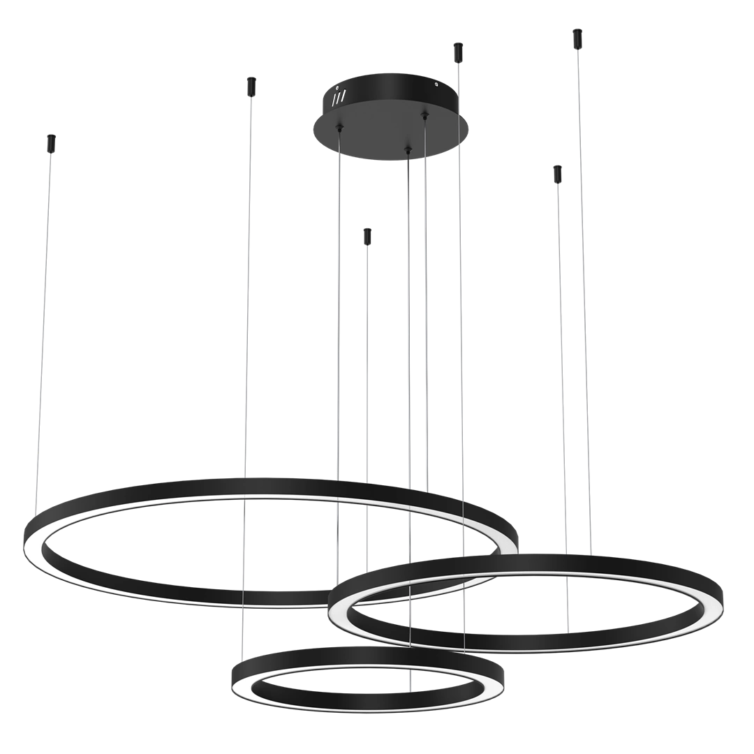 GALAXIA ML8789 to stylowa lampa wisząca z trzema źródłami światła. Wykonana została z wysokiej jakości metalu w kolorze czarnym, źródła światła ukryto pod mlecznymi osłonami z tworzywa. Oprawa będzie idealnym wyborem do wnętrz urządzonych w nowoczesnym stylu. Doskonale będzie się prezentować w: salonie, jadalni, sypialni, pokoju młodzieżowym, gabinecie, biurze, lokalu, kuchni. Dużym atutem jest możliwość regulacji wysokości. Wysokość maksymalna lampy to: 100 cm, szerokość 110 cm, głębokość 90 cm. Lampa posiada zintegrowane źródła światła LED o łącznej mocy 85W, ciepłej barwie 3500K i jasności 5100lm (źródła światła są wymienne)