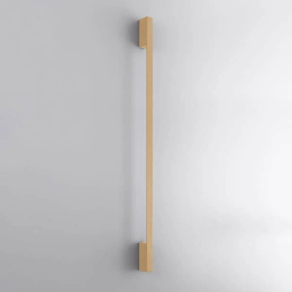 SAPPO TH.208 to stylowa lampa ścienna z jednym źródłem światła. Wykonana została z aluminium w kolorze złotym. Bardzo elegancki wygląd sprawia, że kinkiet będzie idealnym wyborem do wnętrz urządzonych w stylu nowoczesnym oraz minimalistycznym. Doskonale będzie się prezentować w: salonie, jadalni, sypialni, pokoju młodzieżowym, gabinecie, biurze, lokalu, przedpokoju, korytarzu. Wysokość lampy to: 150 cm, szerokość 4 cm, długość 6,5 cm. Źródłem światła jest wbudowany moduł LED o mocy 25W, ciepłej barwie 3000K i jasności 2875lm