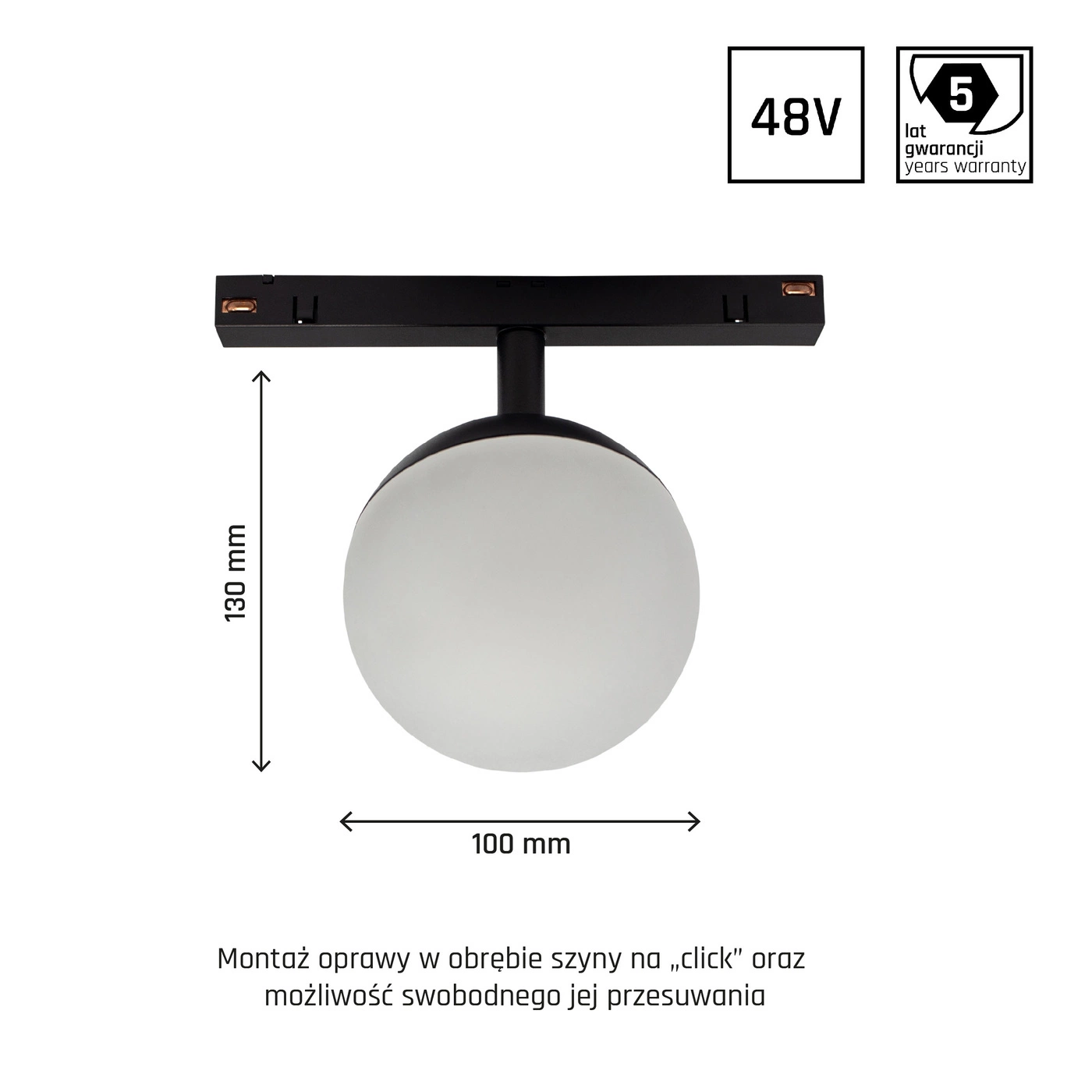 Oprawa GLOBE 5W to nowoczesna oprawa LED montowana w szynoprzewodzie magnetycznym 48V SHIFT