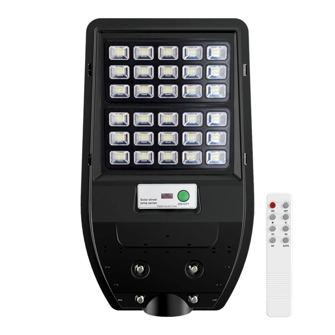 VIA EKO9093 to zewnętrzna lampa przeznaczona do oświetlenia placów, parkingów, bram wjazdowych, posesji. Wykonana została z aluminium, szkła i poliwęglanu w kolorze czarnym. Źródłem światła jest wbudowany LED o mocy 50W, zimnej barwie 6000K i jasności 500lm. Oprawa wyposażona jest w akumulator 5000mAh 3,2V, którego czas ładowania to 5-6 godzin, a czas pracy zależy od wybranego trybu. Akumulator ładowany jest z panelu słonecznego. Dużą zaletą lampy jest czujnik zmierzchowo-ruchowy. W oprawie zostały zastosowane soczewki dzięki temu lampa posiada bardzo szeroki i głęboki kąt świecenia: 140°*70°. Dodatkowo wbudowana dioda przy przycisku on/off informuje nas o poziomie naładowania baterii. Do lampy dołączony jest pilot dzięki któremu jesteśmy w stanie wybrać interesujący nas tryb pracy: