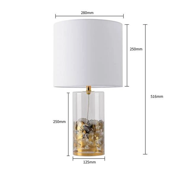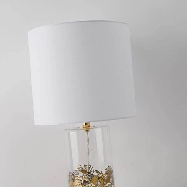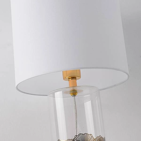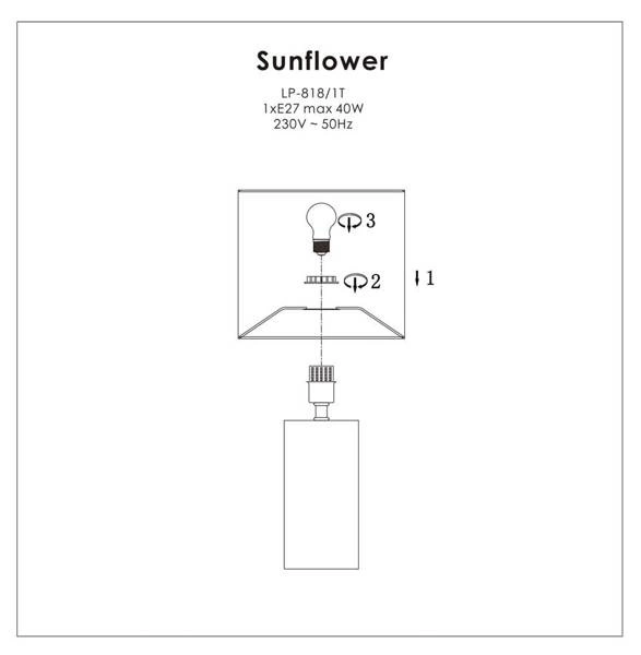 SUNFLOWER LP-818/1T WH to stylowa lampa stołowa z jednym źródłem światła. Podstawę lampy wykonano z transparentnego szkła ze złotymi zdobieniami. Abażur jest z białej tkaniny. Oprawa będzie idealnym wyborem do wnętrz urządzonych w nowoczesnym stylu. Doskonale będzie się prezentować w: salonie, jadalni, sypialni, pokoju młodzieżowym, gabinecie, lokalu, biurze. Wysokość lampy to: 51,5 cm, szerokość 28 cm, głębokość 28 cm. Źródłem światła jest żarówka typu E27 o mocy max 40W w ilości 1 szt.