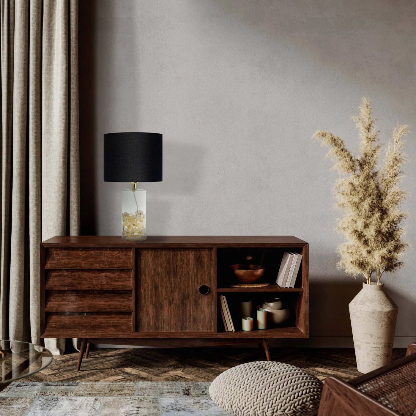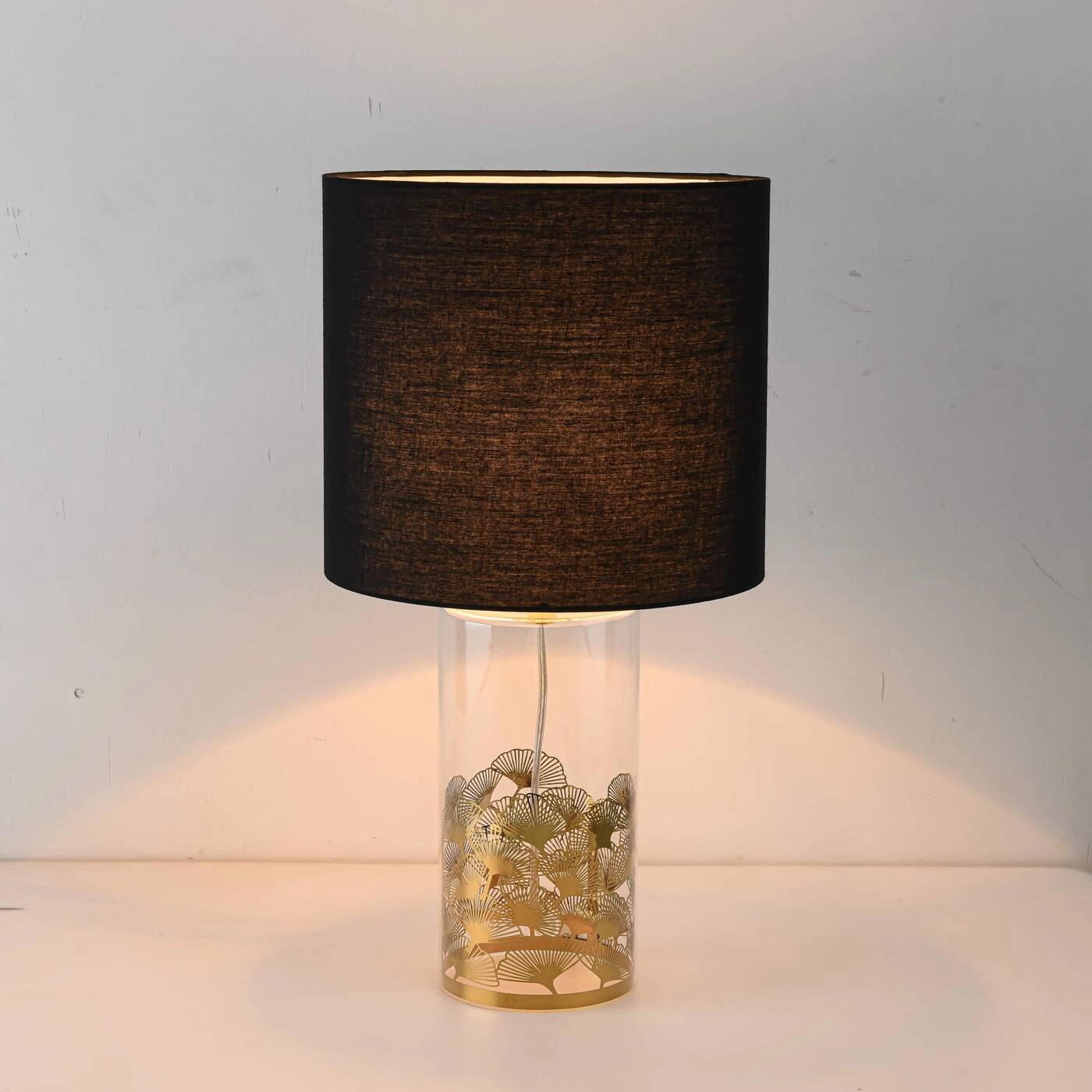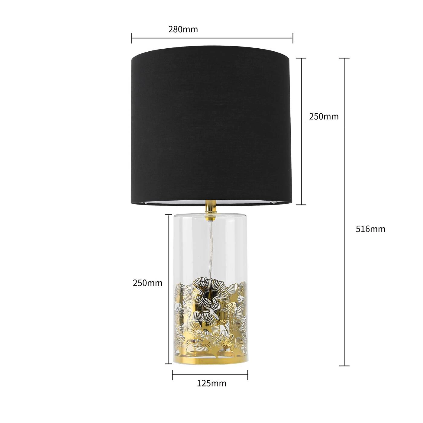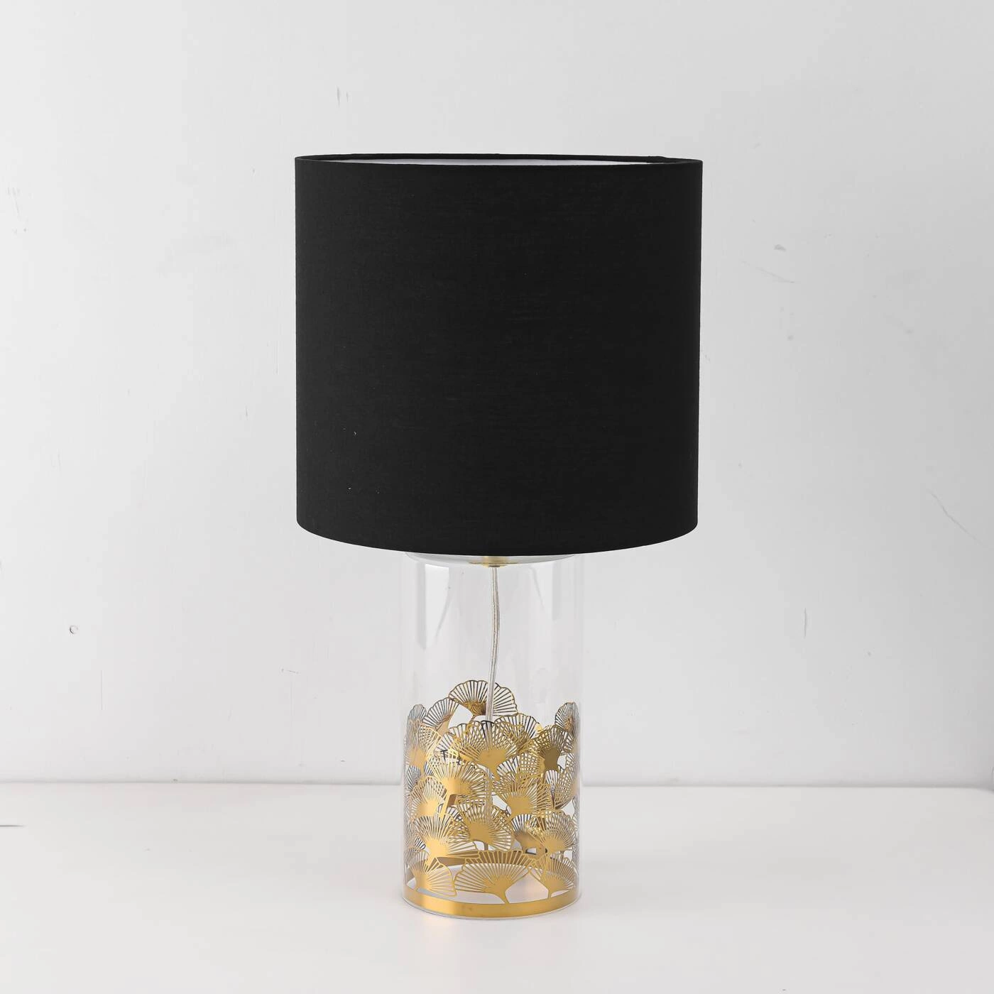 SUNFLOWER LP-818/1T BK to stylowa lampa stołowa z jednym źródłem światła. Podstawę lampy wykonano z transparentnego szkła ze złotymi zdobieniami. Abażur jest z czarnej tkaniny. Oprawa będzie idealnym wyborem do wnętrz urządzonych w nowoczesnym stylu. Doskonale będzie się prezentować w: salonie, jadalni, sypialni, pokoju młodzieżowym, gabinecie, lokalu, biurze. Wysokość lampy to: 51,5 cm, szerokość 28 cm, głębokość 28 cm. Źródłem światła jest żarówka typu E27 o mocy max 40W w ilości 1 szt.