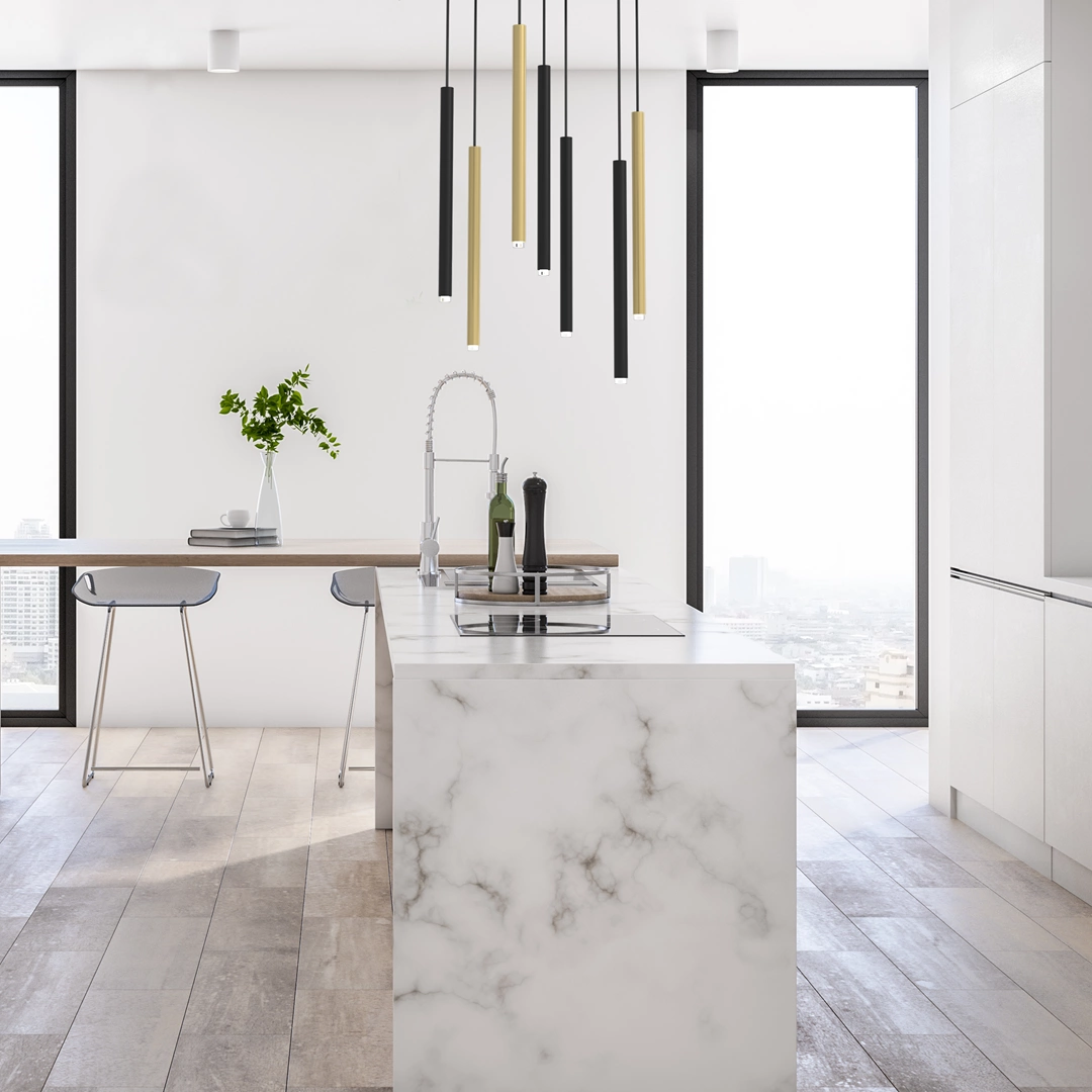 MONZA MLP8843 to stylowa lampa wisząca z siedmioma źródłami światła. Wykonana została z wysokiej jakości metalu w kolorze czarno-złotym. Elementami wyróżniającymi lampy są smukłe walcowate klosze przypominające sople. Oprawa będzie idealnym wyborem do wnętrz urządzonych w stylu nowoczesnym oraz glamour. Doskonale będzie się prezentować w każdym pomieszczeniu. Dużą zaletą jest możliwość regulacji wysokości. Wysokość maksymalna lampy to: 90 cm, szerokość 44 cm, głębokość 44 cm. Źródłem światła jest żarówka typu G9 o mocy max 8W w ilości 7 szt.