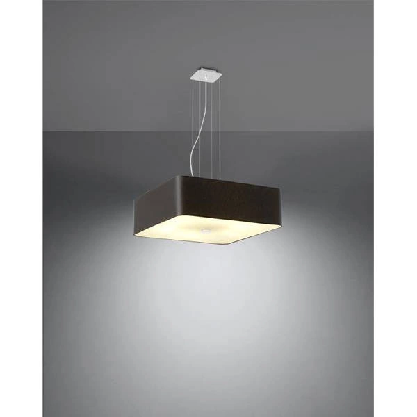 LOKKO SL.0824 to nowoczesna lampa wisząca z pięcioma źródłami światła. Zawiesie lampy wykonano z wysokiej jakości stali. Abażur jest z czarnej tkaniny zamknięty od spodu mleczną taflą szkła. Oprawa będzie idealnym wyborem do wnętrz urządzonych w stylu nowoczesnym oraz minimalistycznym. Doskonale będzie się prezentować w: salonie, jadalni, sypialni, pokoju młodzieżowym, gabinecie, biurze, lokalu, kuchni. Dużym atutem jest możliwość regulacji wysokości. Wysokość maksymalna lampy to: 105 cm, szerokość 55 cm, długość 55 cm. Źródłem światła jest żarówka typu E27 o mocy max 60W w ilości 5 szt.