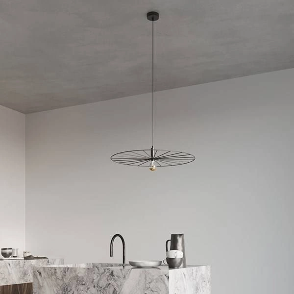 SIRKEL TH.145 to stylowa lampa wisząca z jednym źródłem światła. Wykonana została z wysokiej jakości stali w kolorze czarnym. Elementem zwracającym uwagę jest druciany klosz w kształcie koła. Bardzo elegancki wygląd sprawia, że lampa będzie idealnym wyborem do wnętrz urządzonych w stylu nowoczesnym, klasycznym oraz industrialnym. Doskonale będzie się prezentować w: salonie, jadalni, sypialni, pokoju młodzieżowym, gabinecie, biurze, lokalu, kuchni. Dużym atutem jest możliwość regulacji wysokości. Wysokość maksymalna lampy to: 150 cm, szerokość 45 cm, długość 45 cm. Źródłem światła jest żarówka typu E27 o mocy max 60W w ilości 1 szt.