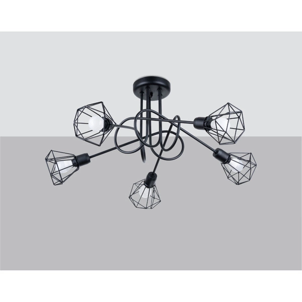 ARTEMIS SL.1110 to stylowa lampa sufitowa z pięcioma źródłami światła. Wykonana została z wysokiej jakości stali w kolorze czarnym. Oprawa będzie idealnym wyborem do wnętrz urządzonych w stylu nowoczesnym, industrialnym oraz loftowym. Doskonale będzie się prezentować w: salonie, sypialni, jadalni, pokoju młodzieżowym, gabinecie, biurze, lokalu, przedpokoju, korytarzu, kuchni. Wysokość lampy to: 28,5 cm, średnica 58 cm. Źródłem światła jest żarówka typu E14 o mocy max 40W w ilości 5 szt.