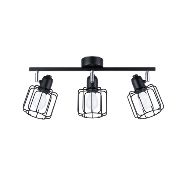 BELUCI SL.1116 to stylowa lampa sufitowa z trzema źródłami światła. Wykonana została z wysokiej jakości stali w kolorze czarnym z chromowymi detalami. Klosze lampy mają możliwość regulacji kierunku padania światła. Oprawa będzie idealnym wyborem do wnętrz urządzonych w stylu nowoczesnym, industrialnym oraz loftowym. Doskonale będzie się prezentować w: salonie, sypialni, jadalni, pokoju młodzieżowym, gabinecie, biurze, lokalu, przedpokoju, korytarzu, kuchni. Wysokość lampy to: 19 cm, szerokość 17 cm, długość 48 cm. Źródłem światła jest żarówka typu E14 o mocy max 40W w ilości 3 szt.