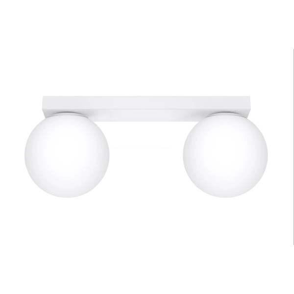 YOLI SL.1147 to stylowa lampa sufitowa z dwoma źródłami światła. Lampa składa się ze stalowej podłużnej podsufitki i osadzonych na niej dwóch kulistych kloszy ze szkła. Całość jest w kolorze białym. Oprawa będzie idealnym wyborem do wnętrz urządzonych w stylu nowoczesnym, industrialnym, loftowym a także skandynawskim. Doskonale będzie się prezentować w: salonie, sypialni, jadalni, pokoju młodzieżowym, gabinecie, biurze, lokalu, przedpokoju, korytarzu, kuchni. Wysokość lampy to: 14,5 cm, szerokość 12 cm, długość 34,5 cm. Źródłem światła jest żarówka typu G9 o mocy max 40W w ilości 2 szt.
