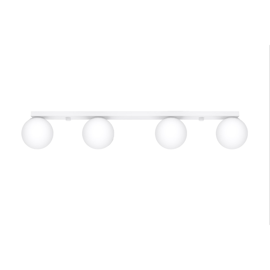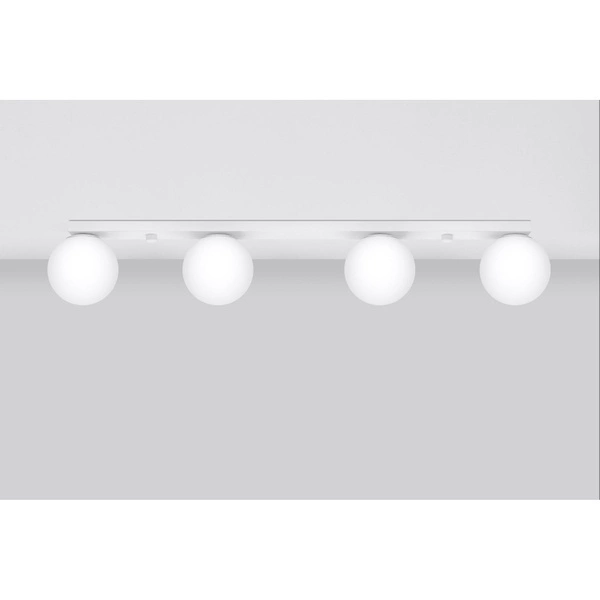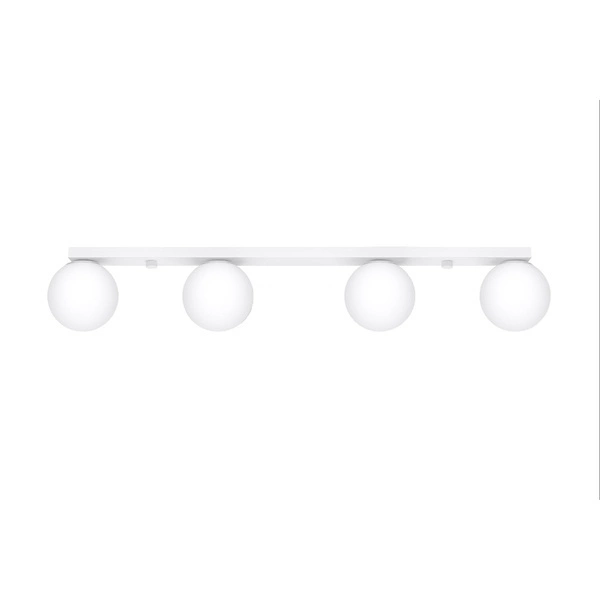 YOLI SL.1149 to stylowa lampa sufitowa z czterema źródłami światła. Lampa składa się ze stalowej podłużnej podsufitki i osadzonych na niej czterech kulistych kloszy ze szkła. Całość jest w kolorze białym. Oprawa będzie idealnym wyborem do wnętrz urządzonych w stylu nowoczesnym, industrialnym, loftowym a także skandynawskim. Doskonale będzie się prezentować w: salonie, sypialni, jadalni, pokoju młodzieżowym, gabinecie, biurze, lokalu, przedpokoju, korytarzu, kuchni. Wysokość lampy to: 14,5 cm, szerokość 12 cm, długość 88 cm. Źródłem światła jest żarówka typu G9 o mocy max 40W w ilości 4 szt.