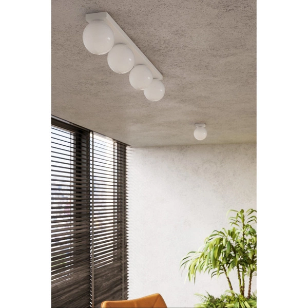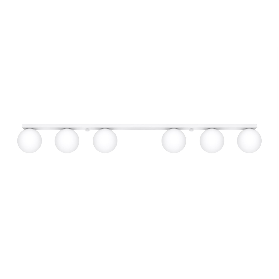 YOLI SL.1150 to stylowa lampa sufitowa z sześcioma źródłami światła. Lampa składa się ze stalowej podłużnej podsufitki i osadzonych na niej sześciu kulistych kloszy ze szkła. Całość jest w kolorze białym. Oprawa będzie idealnym wyborem do wnętrz urządzonych w stylu nowoczesnym, industrialnym, loftowym a także skandynawskim. Doskonale będzie się prezentować w: salonie, sypialni, jadalni, pokoju młodzieżowym, gabinecie, biurze, lokalu, przedpokoju, korytarzu, kuchni. Wysokość lampy to: 14,5 cm, szerokość 12 cm, długość 120 cm. Źródłem światła jest żarówka typu G9 o mocy max 40W w ilości 6 szt.