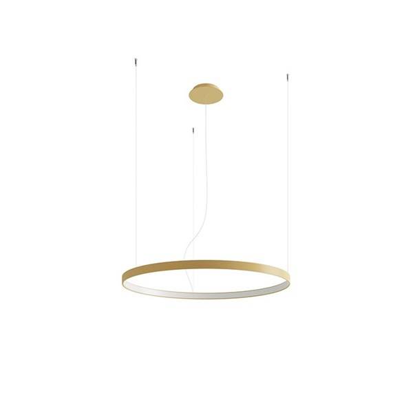 RIO TH.174 to stylowa lampa wisząca z jednym źródłem światła. Wykonana została z aluminium w kolorze złotym. Źródło światła znajduje się pod białą osłoną z tworzywa. Oprawa będzie idealnym wyborem do wnętrz urządzonych w nowoczesnym stylu. Doskonale będzie się prezentować w: salonie, jadalni, sypialni, pokoju młodzieżowym, gabinecie, biurze, lokalu, kuchni, łazience. Dużą zaletą jest możliwość regulacji wysokości. Wysokość maksymalna lampy to: 150 cm, szerokość 78 cm, długość 78 cm. Źródłem światła jest zintegrowany LED o mocy 50W, ciepłej barwie 3000K i jasności 5520lm