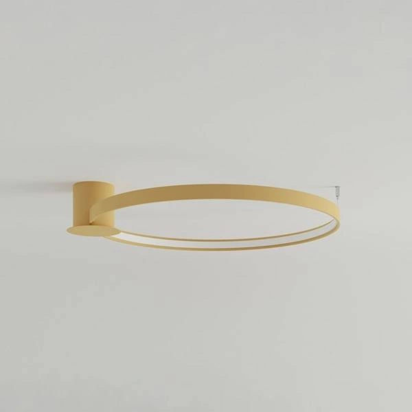 RIO TH.224 to stylowa lampa sufitowa z jednym źródłem światła. Lampa ma kształt pierścienia osadzonego na okrągłej podsufitce, wykonana została z aluminium w kolorze złotym. Źródło światła znajduje się pod mleczną osłoną z tworzywa. Oprawa będzie idealnym wyborem do wnętrz urządzonych w nowoczesnym stylu. Doskonale będzie się prezentować w: salonie, jadalni, sypialni, pokoju młodzieżowym, gabinecie, biurze, lokalu, kuchni, łazience. Wysokość lampy to: 12,5 cm, szerokość 78 cm, długość 87 cm. Źródłem światła jest zintegrowany LED o mocy 50W, ciepłej barwie 3000K i jasności 5520lm