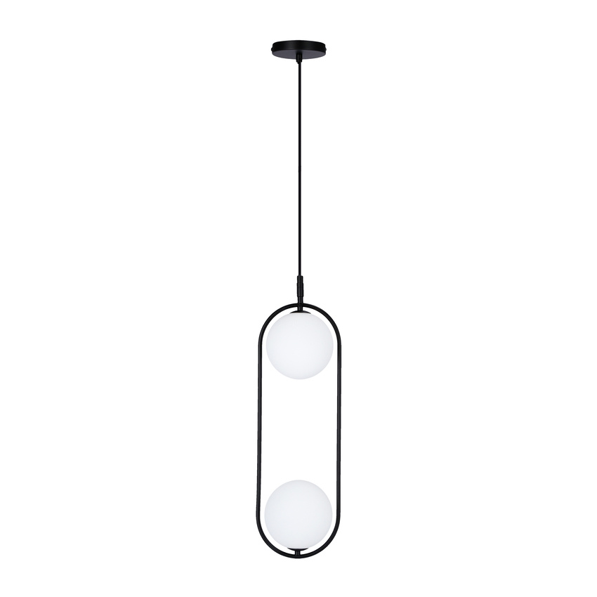 CORDEL 31-10155 to stylowa lampa wisząca z dwoma źródłami światła. Zawiesie lampy wykonano z wysokiej jakości stali w kolorze czarnym, klosze są z białego szkła. Oprawa będzie idealnym wyborem do wnętrz urządzonych w stylu klasycznym oraz nowoczesnym. Doskonale będzie się prezentować w salonie, jadalni, sypialni, pokoju, młodzieżowym, gabinecie, lokalu, kuchni. Dużym atutem jest możliwość regulacji wysokości. Wysokość maksymalna lampy to: 140 cm, szerokość 18 cm, głębokość 15 cm. Źródłem światła jest żarówka typu G9 o mocy max 28W w ilości 2 szt.