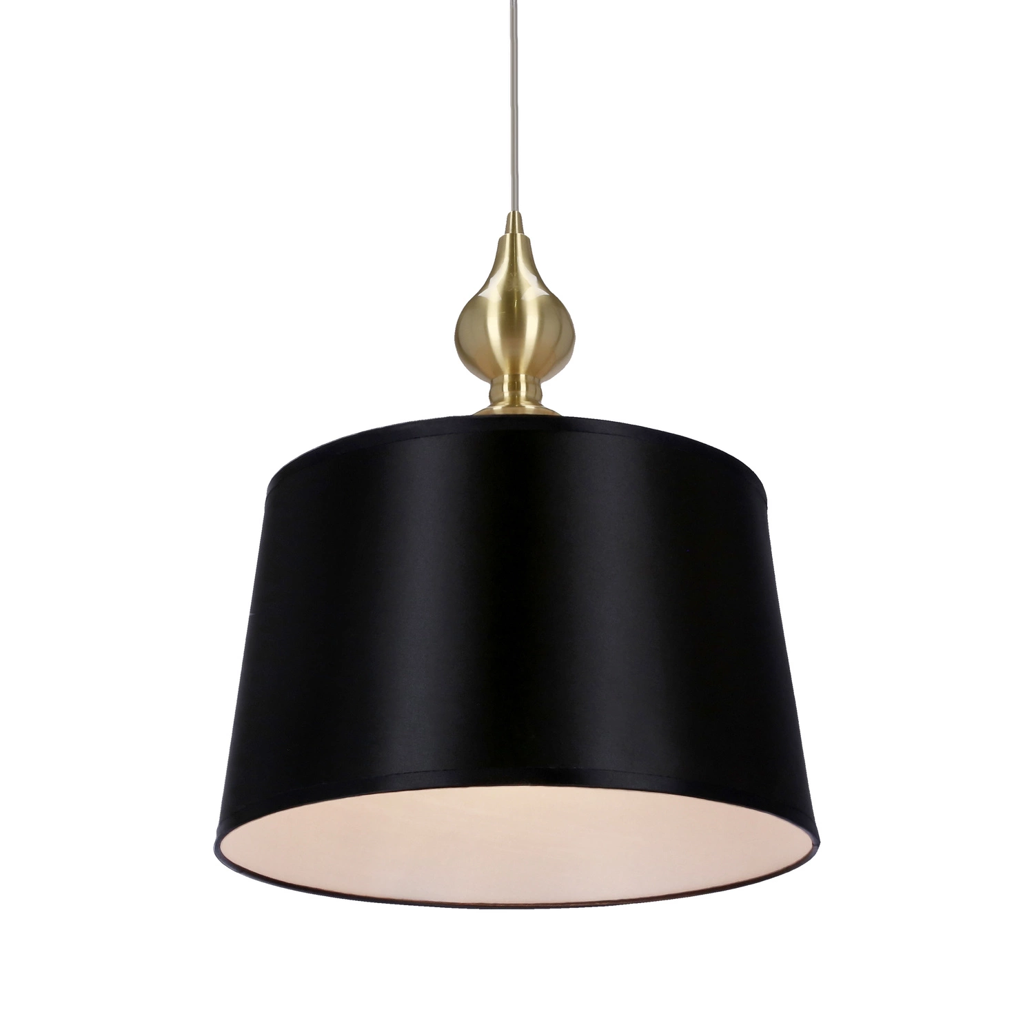 PRIMA 31-09241 to stylowa lampa wisząca z jednym źródłem światła. Zawiesie lampy wykonano z wysokiej jakości stali w kolorze złotym satynowym, abażur jest czarny nitkowy (od wewnątrz wzmocniony PCV). Oprawa będzie idealnym wyborem do wnętrz urządzonych w stylu klasycznym oraz nowoczesnym. Doskonale będzie się prezentować w salonie, jadalni, sypialni, pokoju, młodzieżowym, gabinecie, lokalu, kuchni. Dużym atutem jest możliwość regulacji wysokości. Wysokość maksymalna lampy to: 120 cm, średnica 35 cm. Źródłem światła jest żarówka typu E27 o mocy max 60W w ilości 1 szt.