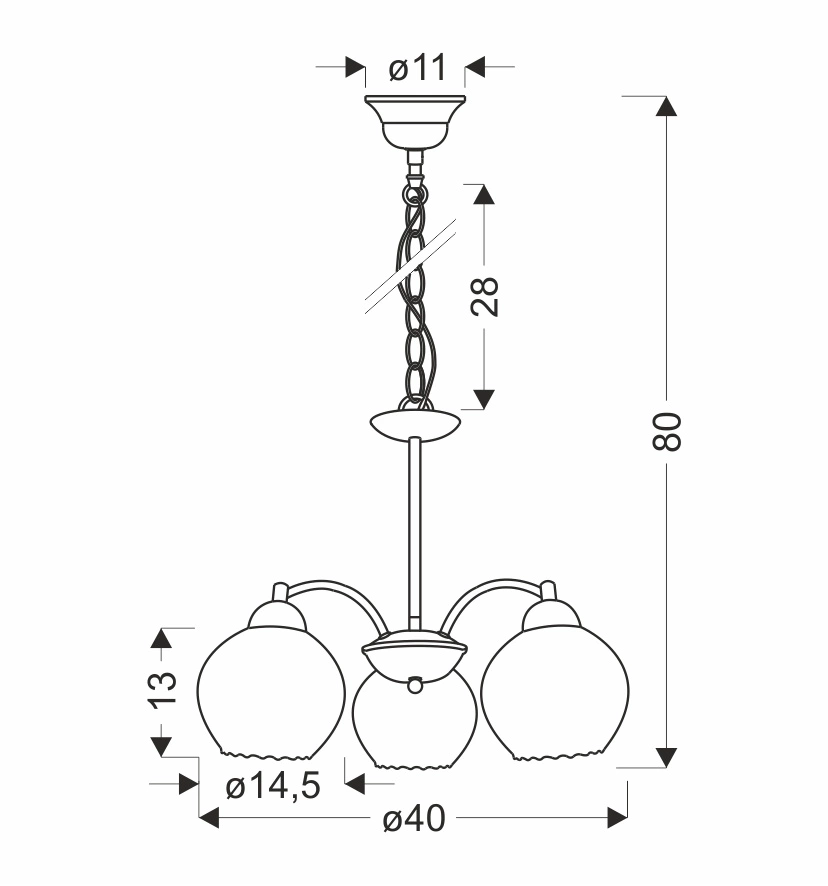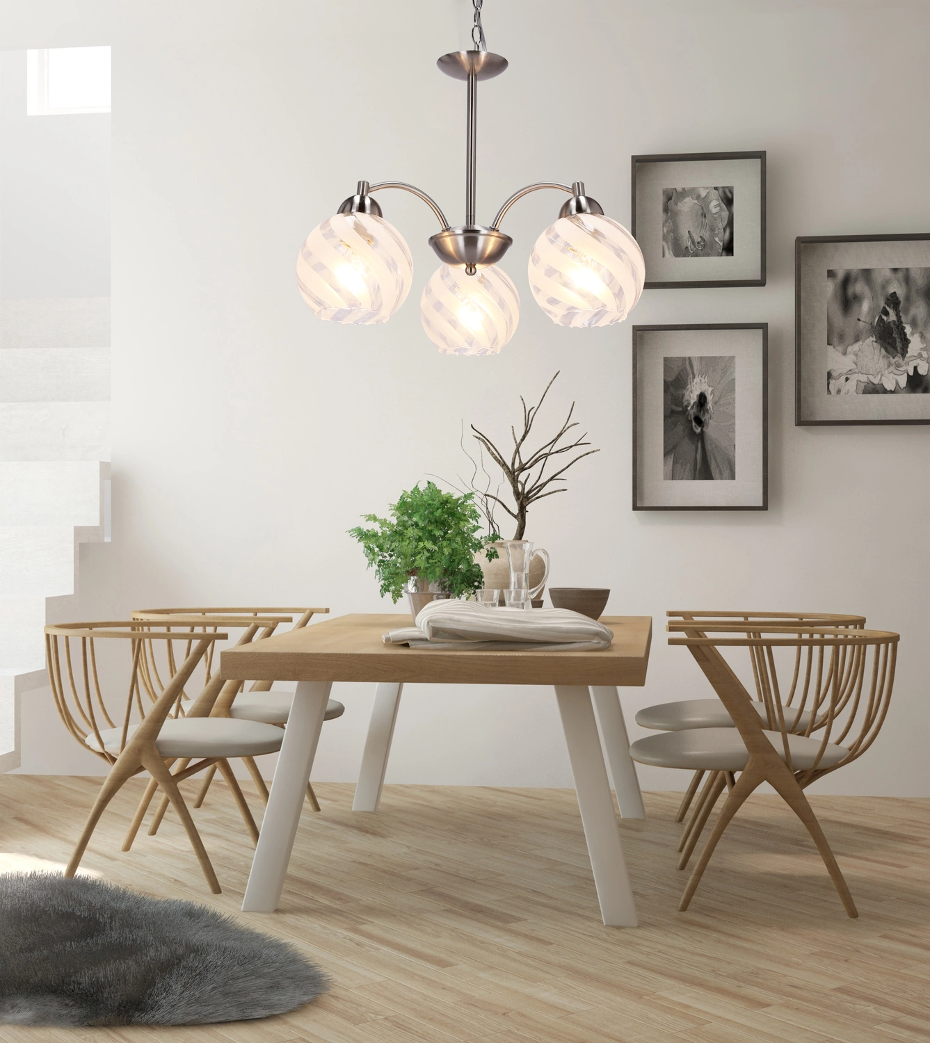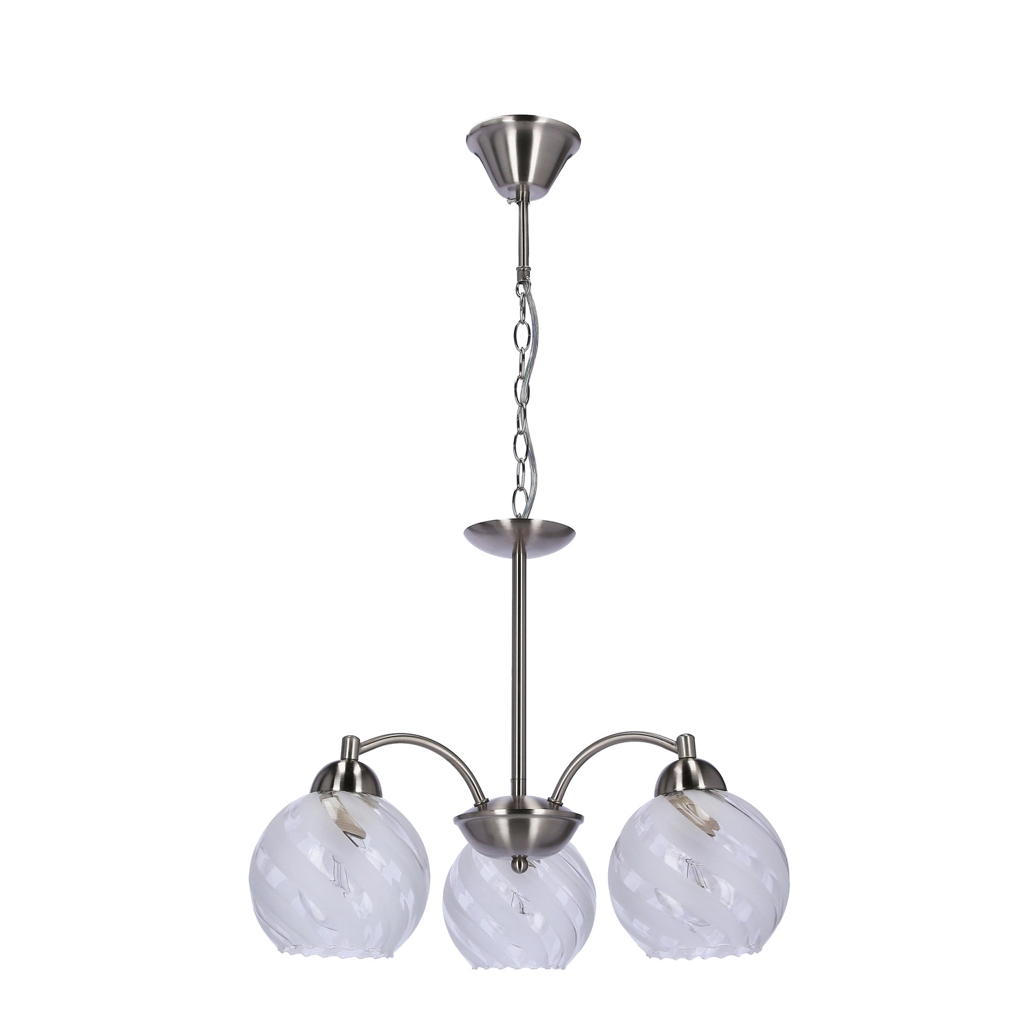 BAIDA 33-16409 to stylowa lampa wisząca z trzema źródłami światła. Zawiesie lampy wykonano z wysokiej jakości stali w kolorze satynowym, klosze są z transparentnego szkła z matowym wzorem. Oprawa będzie idealnym wyborem do wnętrz urządzonych w stylu klasycznym oraz nowoczesnym. Doskonale będzie się prezentować w: salonie, jadalni, sypialni, pokoju młodzieżowym, gabinecie, lokalu, kuchni. Dużym atutem jest możliwość regulacji wysokości. Wysokość maksymalna lampy to: 80 cm, średnica 40 cm. Źródłem światła jest żarówka typu E27 o mocy max 60W w ilości 3 szt.