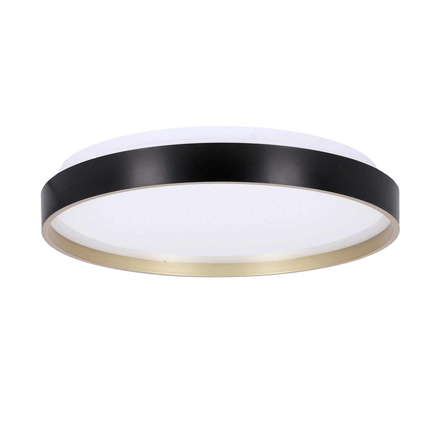 FLORIDA 13-11299 to lampa sufitowa z jednym źródłem światła, która doskonale będzie się prezentować w każdym pomieszczeniu. Podstawę lampy wykonano z wysokiej jakości stali w kolorze czarno-złotym, klosz jest z białego akrylu. Plafon ma wysokość 6 cm i średnicę 33 cm. Źródłem światła jest zintegrowany LED o mocy 18W, neutralnej barwie 4000K i jasności 1100lm