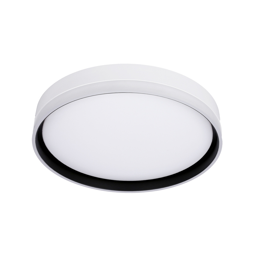 FLORIDA 13-11305 to lampa sufitowa z jednym źródłem światła, która doskonale będzie się prezentować w każdym pomieszczeniu. Podstawę lampy wykonano z wysokiej jakości stali w kolorze biało-czarnym, klosz jest z białego akrylu. Plafon ma wysokość 7,5 cm i średnicę 39 cm. Źródłem światła jest zintegrowany LED o mocy 24W, neutralnej barwie 4000K i jasności 1100lm