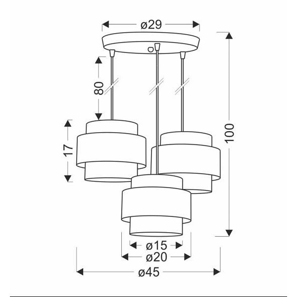 PRESTIGE 33-17949 to stylowa lampa wisząca z trzema źródłami światła. Zawiesie lampy wykonano z wysokiej jakości stali w kolorze czarnym. Abażury są z czarnej tkaniny ozdobione złotymi obręczami. Oprawa będzie idealnym wyborem do wnętrz urządzonych w stylu nowoczesnym oraz glamour. Doskonale będzie się prezentować w: salonie, jadalni, sypialni, pokoju młodzieżowym, gabinecie, lokalu, kuchni. Dużym atutem jest możliwość regulacji wysokości. Wysokość maksymalna lampy to: 100 cm, średnica 45 cm. Źródłem światła jest żarówka typu E27 o mocy max 40W w ilości 3 szt.