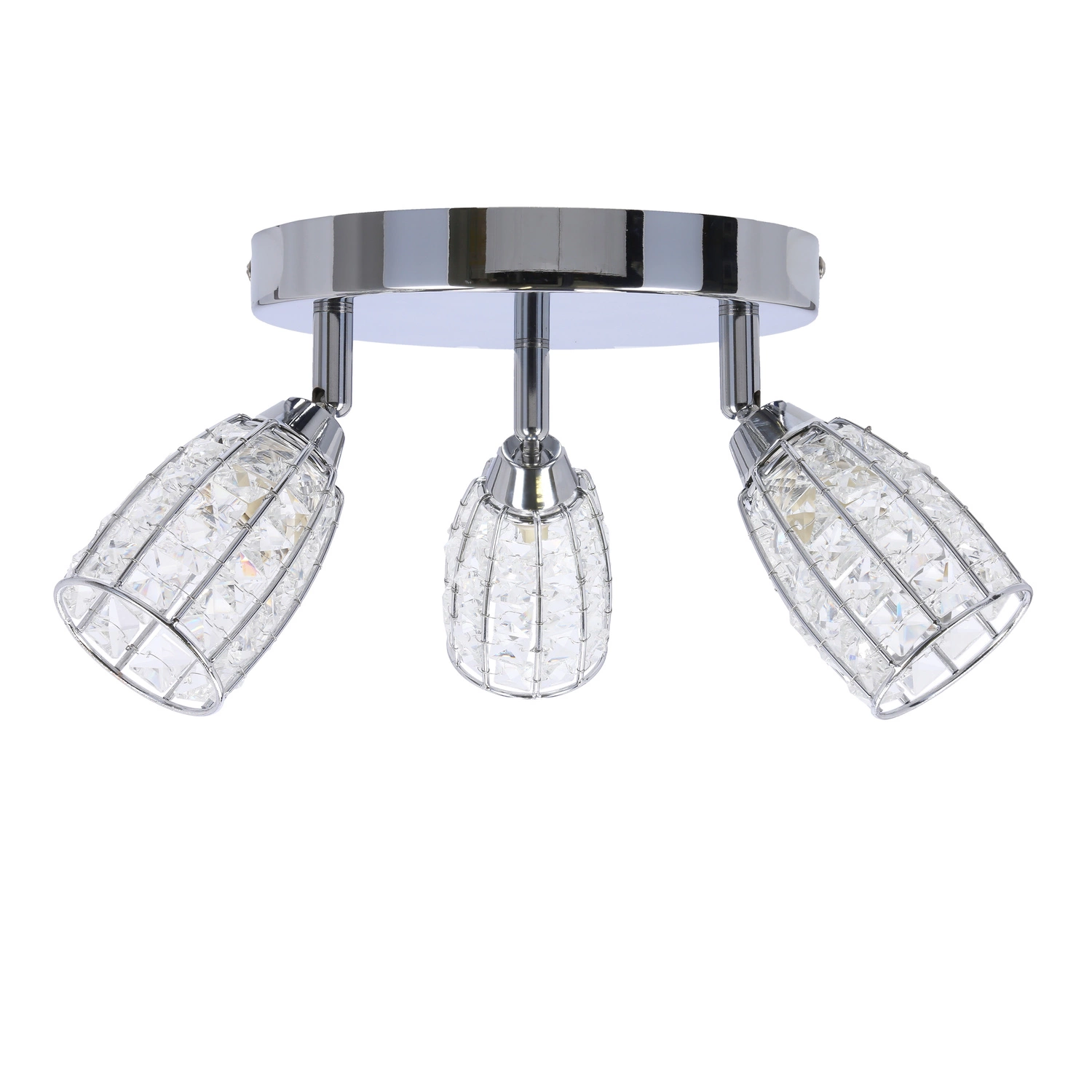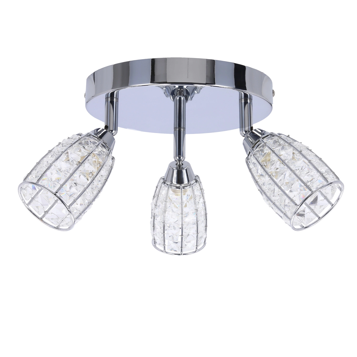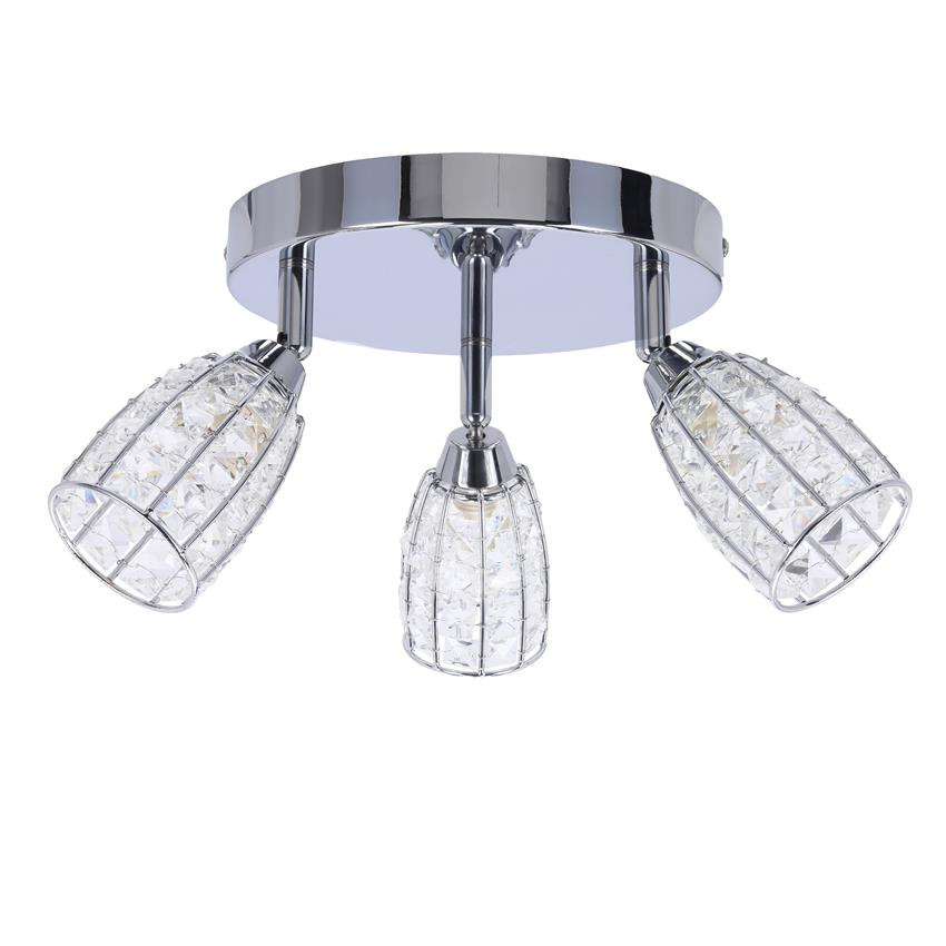 SHIBA 98-13408 to stylowa lampa sufitowa z trzema źródłami światła. Korpus lampy wykonano z wysokiej jakości metalu w kolorze chromowym, klosze są z transparentnych kryształków. Każdy z kloszy ma możliwość regulacji kierunku padania światła. Oprawa będzie idealnym wyborem do wnętrz urządzonych w nowoczesnym stylu. Doskonale będzie się prezentować w: salonie, jadalni, sypialni, pokoju młodzieżowym, gabinecie, lokalu, kuchni. Wysokość lampy to: 16 cm, średnica 30 cm. Źródłem światła jest żarówka typu G9 o mocy max 15W w ilości 3 szt.