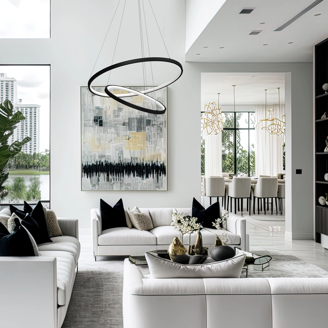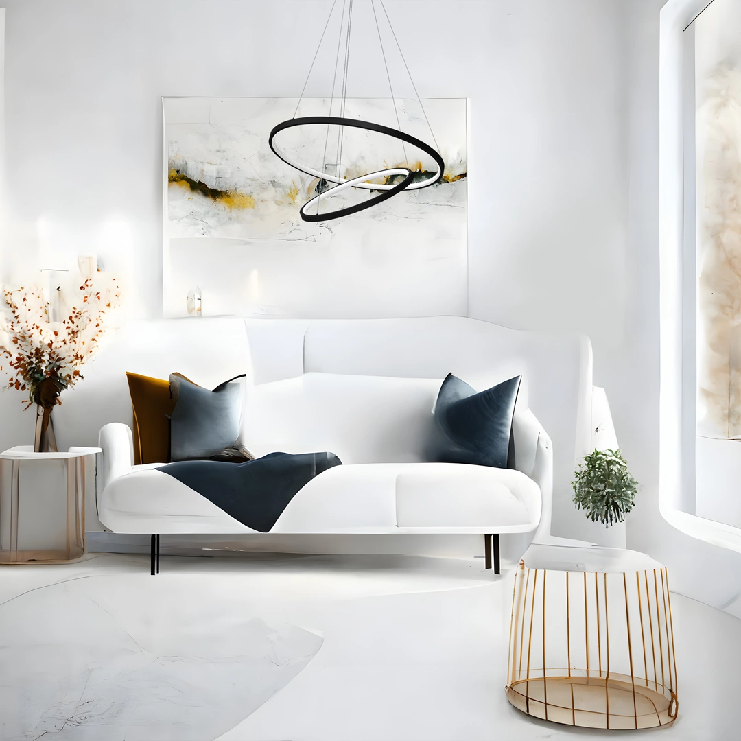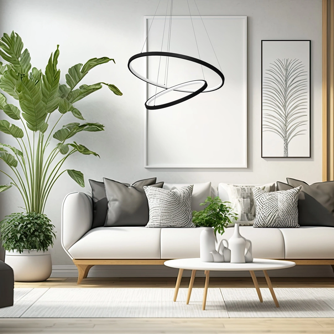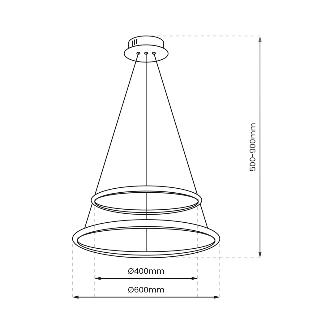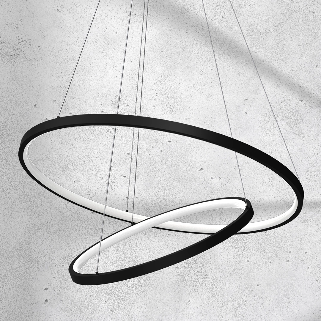 ROTONDA ML7942 to stylowa lampa wisząca ze zintegrowanym źródłem światła. Wykonana została z wysokiej jakości metalu w kolorze czarnym. Elementami wyróżniającymi lampy są dwa klosze w kształcie pierścieni zawieszone na stalowych linkach. Źródła światła znajdują się pod mlecznymi osłonami z tworzywa. Oprawa będzie idealnym wyborem do wnętrz urządzonych w stylu nowoczesnym oraz minimalistycznym. Doskonale będzie się prezentować w: salonie, jadalni, sypialni, pokoju młodzieżowym, gabinecie, biurze, lokalu, kuchni. Dużą zaletą jest możliwość regulacji wysokości. Wysokość maksymalna lampy to: 90 cm, szerokość 60 cm, głębokość 60 cm. Lampa posiada wymienne źródła światła LED o łącznej mocy 51W, neutralnej barwie 4000K i jasności 2550lm