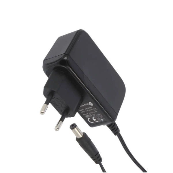 Zasilacz wtyczkowy POSC12150A 12V/1.5A/18W, adapter wertykalny, gniazdo AC:CEE7/16. wtyk DC:2.1/5.5(+) | Czarny