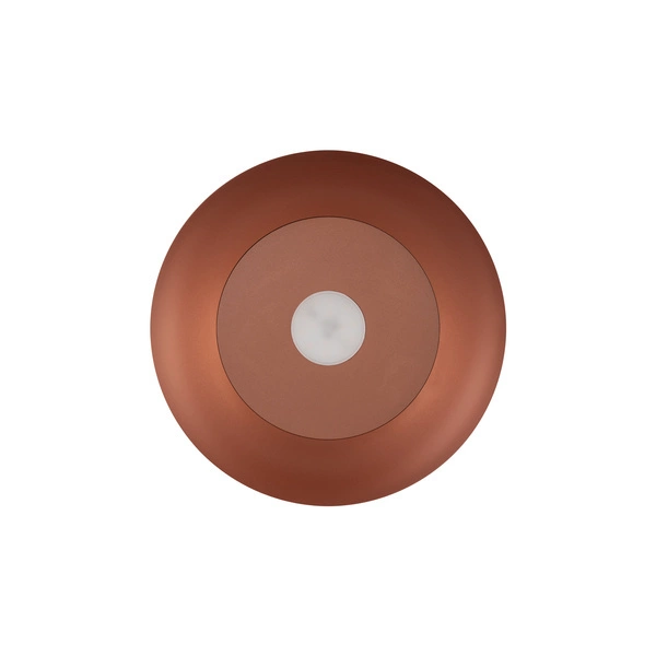 Lampa wykonana ze stali w kolorze miedzi, wewnątrz natomiast
