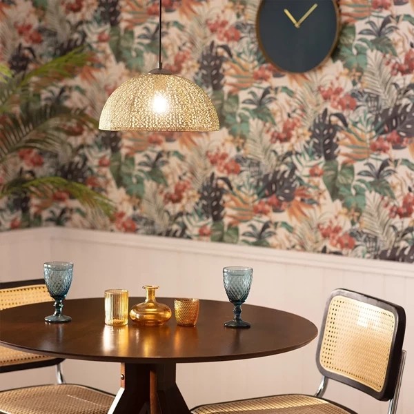 Dostosowane Oświetlenie: Lampa Wisząca Złota Abruzzo Emma E27 umożliwia dostosowanie oświetlenia do Twoich preferencji. Wybierz żarówkę LED E27 o ciepłym, zimnym lub neutralnym świetle, aby stworzyć odpowiednią atmosferę w dowolnym pomieszczeniu.