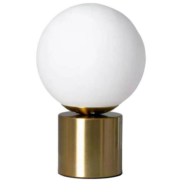 Lampa stołowa Gibis to mleczna, świecąca kula umieszczona na solidnej, złotej podstawie. Ten produkt to prawdziwe dzieło sztuki, które odmieni charakter Twojego wnętrza! Wzbogaci je o nowoczesny styl, jednocześnie stając się jego istotną dekoracją.