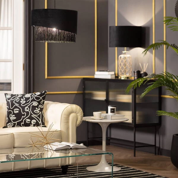Wyjątkowy design: Lampa Wisząca z Czarnego Aksamitu Abruzzo Fonte E27 łączy w sobie elegancję czarnego aksamitu z nowoczesnym stylem. Jej obecność od razu przyciąga uwagę i nadaje prestiżu każdemu pomieszczeniu.