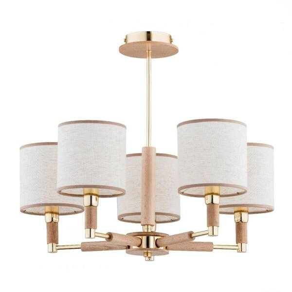 Klasyczny żyrandol drewniany KAMIRA 5xE14 wys. 49cm | drewno złoty