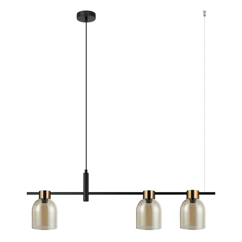 Lampa wisząca Servio dł. 91cm 3xE14 | czarny/bursztynowy