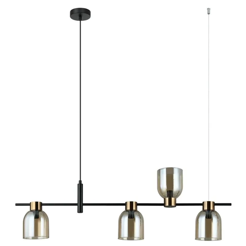 Lampa wisząca Servio dł. 102cm 4xE14 | czarny/bursztynowy